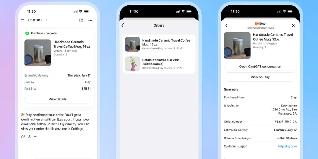Beaucoup de professionnels du SEO l’attendaient (ou le redoutaient), le shopping débarque dès maintenant sur ChatGPT, grâce à l’Agentic Commerce Protocol (ACP). Aujourd’hui limitée aux utilisateurs états-uniens et au site Etsy, la fonctionnalité Instant Checkout devrait progressivement être déployée dans le monde. Elle devrait également s’élargir à Shopify, ce qui représenterait plus d’un million de marchands supplémentaires.